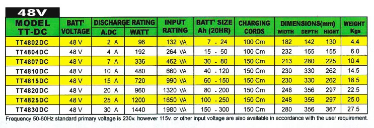 เครื่องชาร์จแบตเตอรี่ รุ่นTT เป็นเครื่องชาร์จแบบอัตโนมัติ สามารถเปิดการทำงานเมื่อแรงดันแบตเตอรี่ต่ำลง และปิดการทำงานเมื่อแบตเตอรี่เต็ม โดยมีประสิทธิภาพการทำงานสูงทั้งในด้านความเร็วในการชาร์จไฟ ความคงที่ของระดับไฟที่ชาร์จ รวมไปถึงความปลอดภัยที่ติดตั้งมาพร้อมกับตัวเครื่อง จึงมั่นใจได้ว่าแบตเตอรี่ของคุณจะได้รับการชาร์จอย่างสบายใจไร้กังวัล เหมาะสำหรับใช้งานกับรถขับเคลื่อนด้วยระบบไฟฟ้า อย่างเช่น รถกอล์ฟ รถลำเลียงสำภาระ รถขัดพื้น รถยกขากรรไกร เอ็กซ์ลิฟท์ X-LIFT