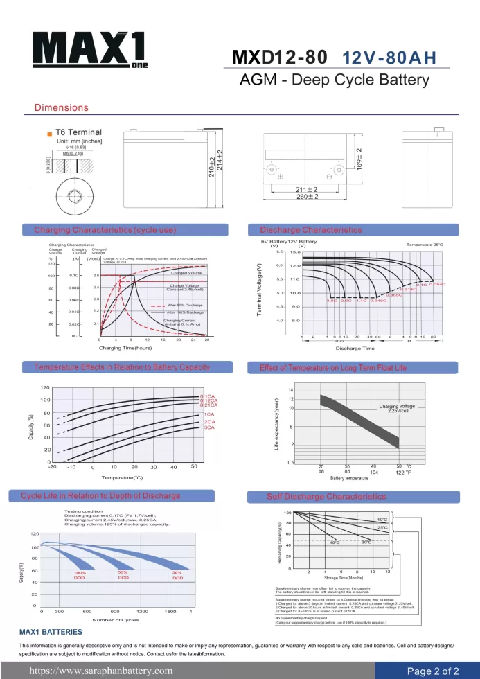 | ความจุไฟฟ้า | 80Ah @ 10HR |
